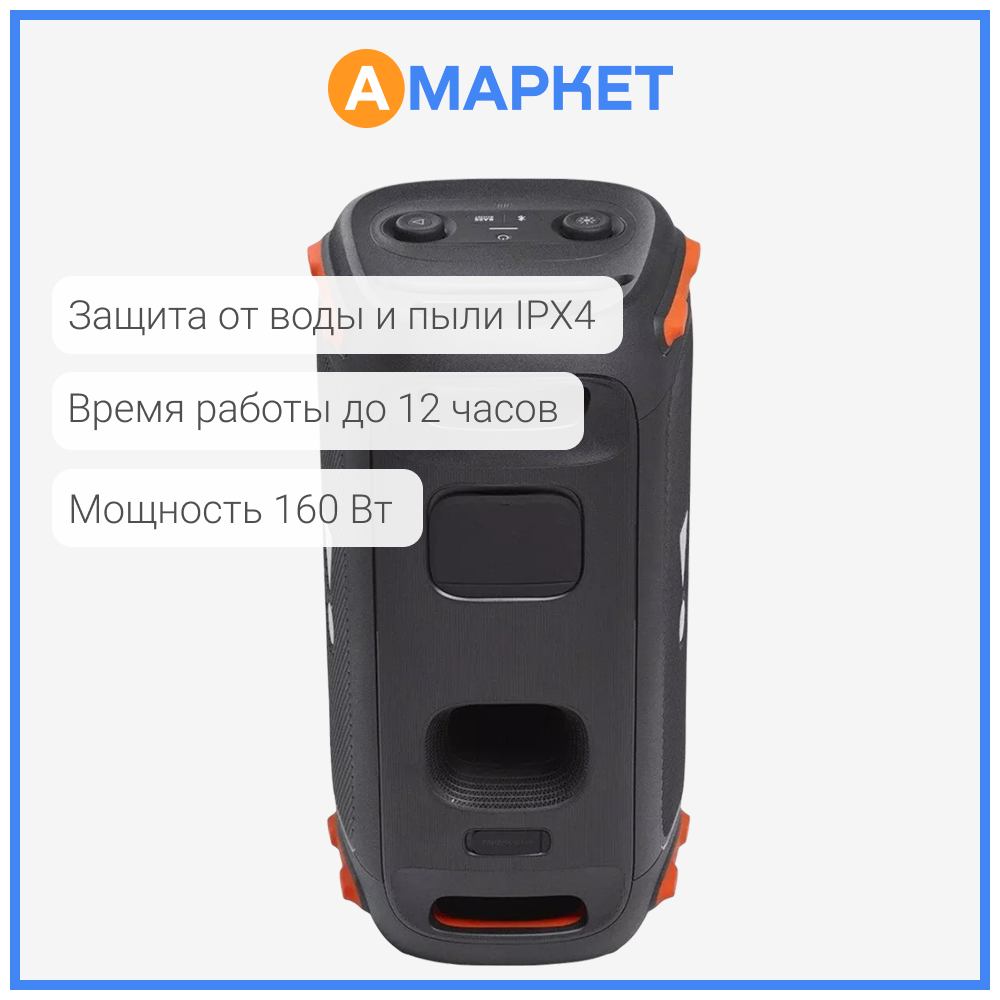 JBL PartyBox 110 обеспечивает превосходное звучание музыки в помещении и на открытом воздухе благодаря двум уровням глубоких регулируемых басов и мощному звуку JBL Original Pro.