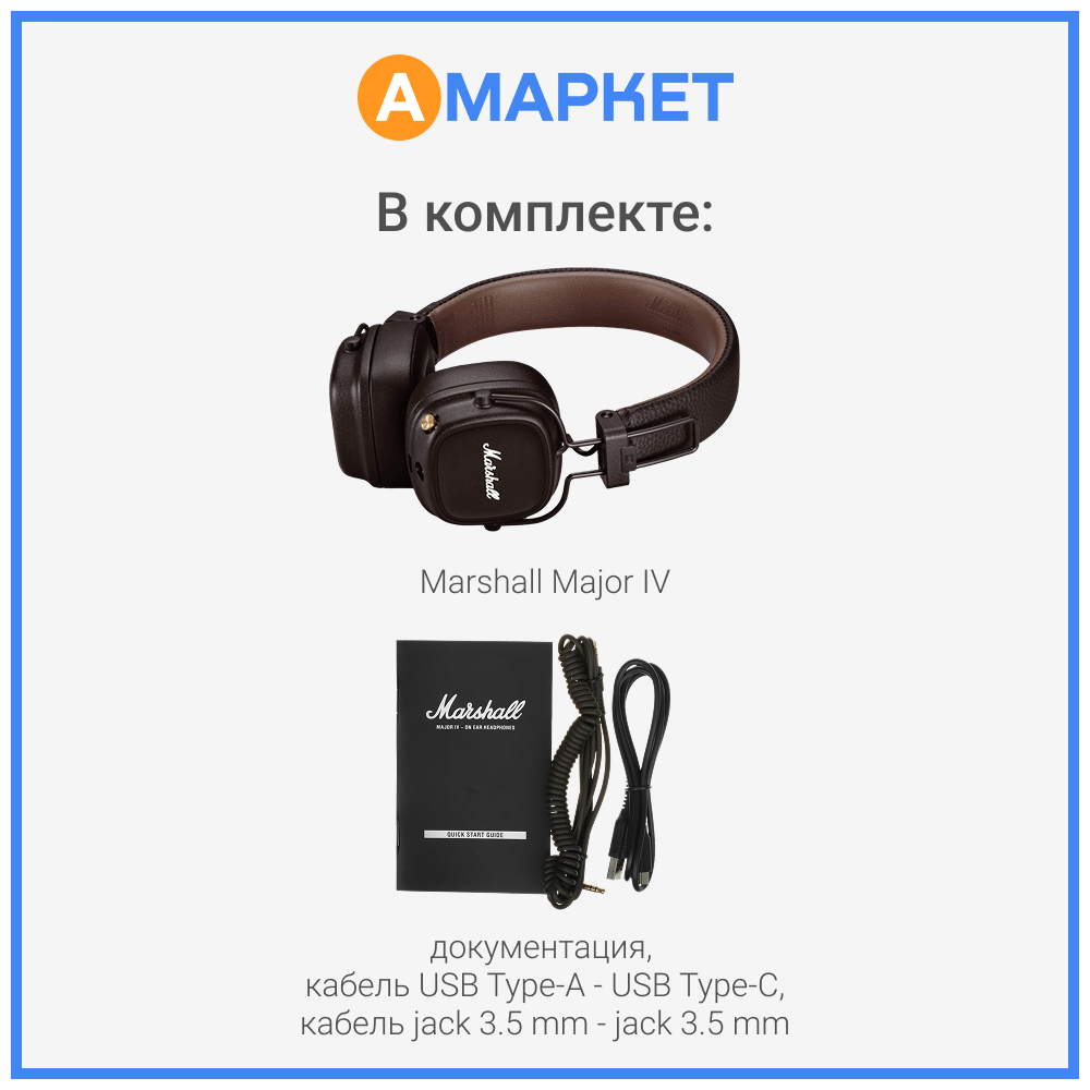 | Комплектация | Marshall Major 4, документация, кабель jack 3.5 mm (M) - jack 3.5 mm (M), кабель для зарядки |