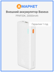 | Емкость аккумулятора | 20000 mAh |
